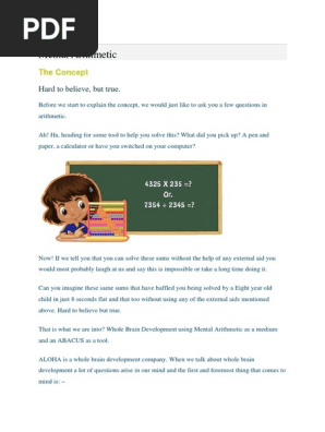 Home Page - Aloha Mental Arithmetic Ireland There is a distinct possibility that someone close to you has extraordinary skills: they are characterized by being between 5 and 13 years old and calling ... Free Math Worksheets Here you will find our selection of Free Math Worksheets which will help your child practise their mental arithmetic by the Math Salamanders.